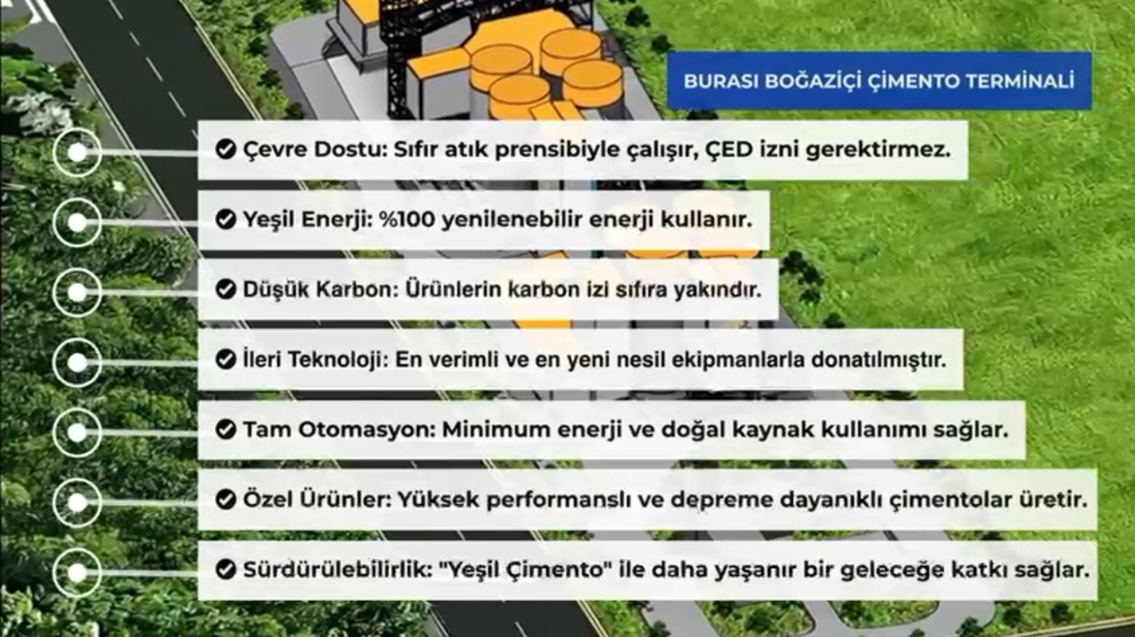Boğaziçi Çimento Öğütme Terminali, Büyükçekmece Mimar Sinan’daki bir entegre çimento fabrikası değildir. Çevresel etkileri yok olan bir çimento tesisi olarak örnek bir işletme olacağının sözünü veririz.